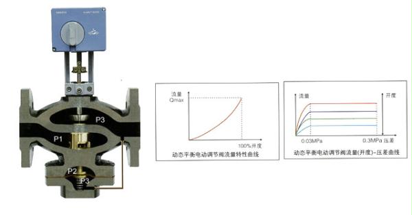 (2)当电动执行器接受控制信号使阀杆向上或向下运动,使阀塞开大或关小,P2、P3间的开度也随之变化。由于不管系统压差如何变化,P2、P3间的压差(P2--P3)始终不变,因此对应于任一开度位置,其输送的水流量都是一定的。